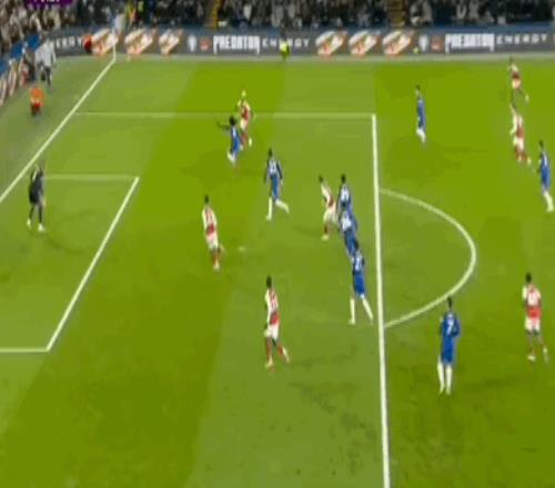 第74分钟,萨卡横传被桑切斯没收,而中路队友已经包抄到位。